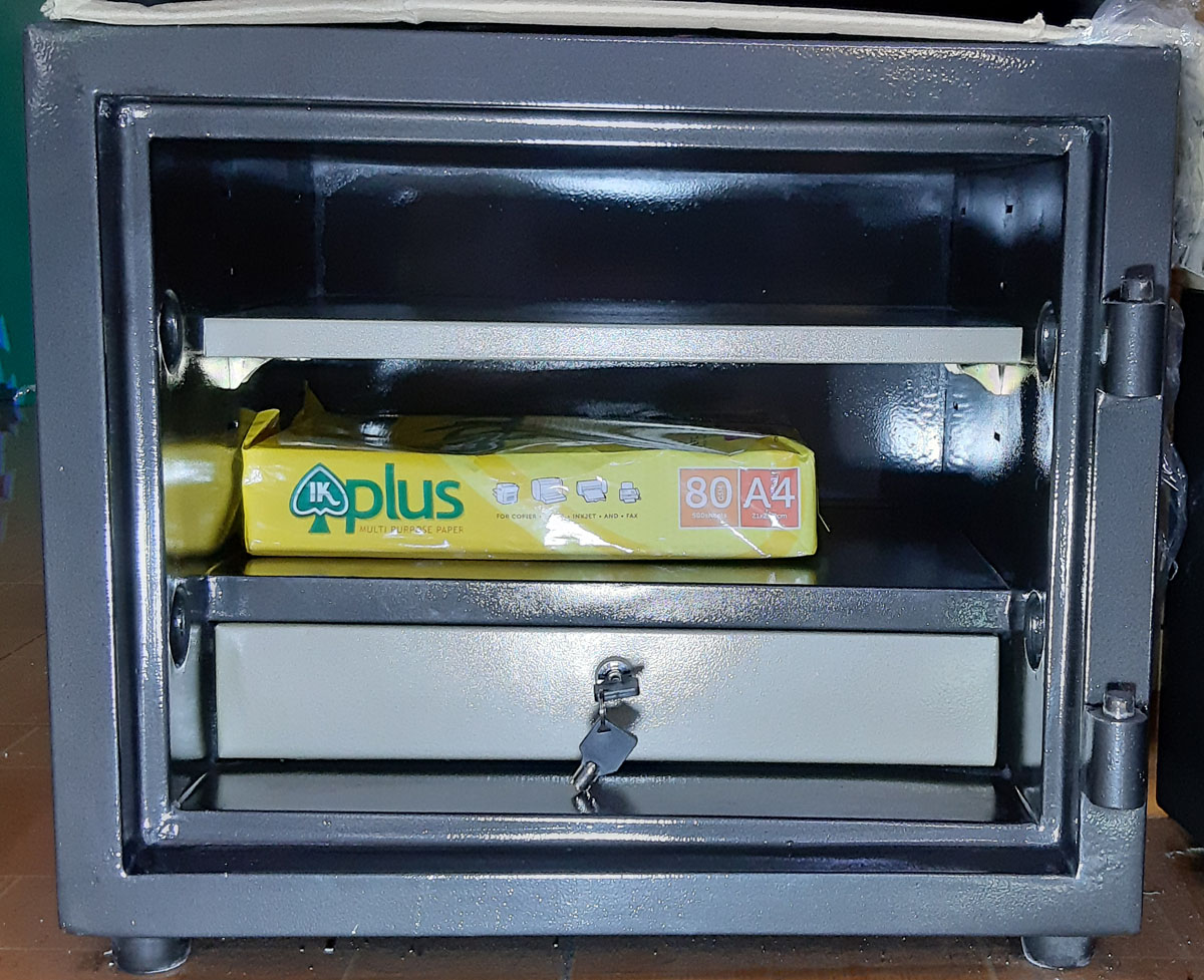- Thiết kế thông minh, tiện lợi: Với trọng lượng 100kg và kích thước nhỏ gọn (Cao 430 x Ngang 490 x Sâu 400 mm), két sắt phù hợp với nhiều không gian. Bên trong két có một ngăn nhỏ có khóa riêng để cất giữ giấy tờ quan trọng và nữ trang, cùng với một tấm ngăn có thể điều chỉnh vị trí linh hoạt để tối ưu hóa không gian lưu trữ.