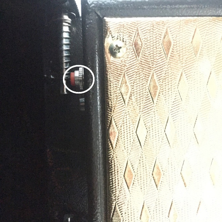 B1: Lấy chìa khoá cắm vào ổ khoá tròn như hình bên dưới và xoay núm vặn để mở két