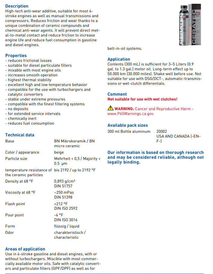 Đây là 2 tài liệu của Liqui Moly về nano và ceramic— Not suitable for wet clutch (không dùng cho ly hợp ướt -xe số)