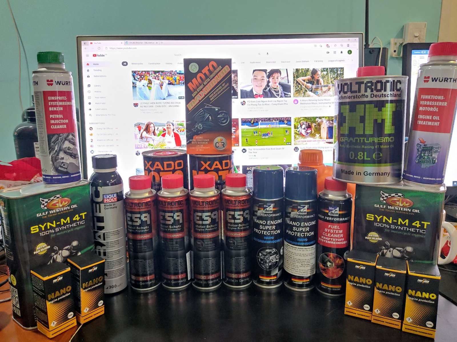 Xado Atom Metal Conditioner Maximum for moto: Nói chung Xado là tập đoàn lớn của Ukraine mà xưa thời Liên Xô máy móc hoá chất cho xe tăng, tàu chiến tàu vũ trụ, ngay cả linh kiện tàu Suyuz mà Mỹ đang còn phải mượn của Nga hiện nay toàn sản xuất ở Ukraine nên mấy bí mật công nghệ nhà máy các kiểu của Liên Xô thuộc về Ukraine hết. Mà sự trâu chó của máy móc, công nghệ nguyên tử đồ của Liên Xô thì khỏi phải bàn nên em có niềm tin vào bọn Xado này. Test thực tế thấy rất êm mượt, hơn hẳn E59 và Ceratec nhưng tác dụng có phục hồi động cơ thật hay không chịu.