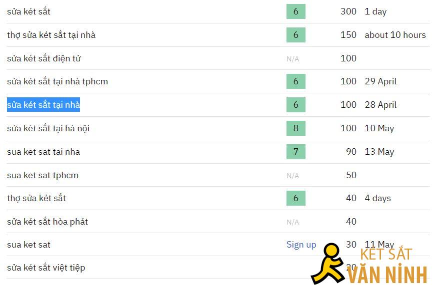 Bao gồm các từ khóa liên quan đến lĩnh vực sửa chữa két sắt, thay thế chìa khóa, ổ khóa, thay pin, sửa các loại két sắt cơ, điện tử, thay pin két sắt