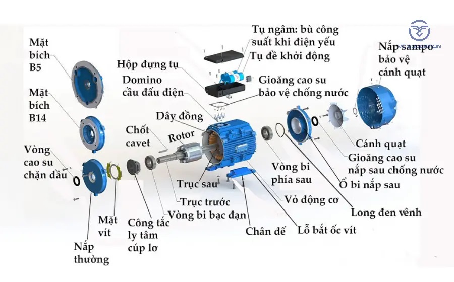 • Động cơ không đồng bộ thường có hiệu suất 85–90%.